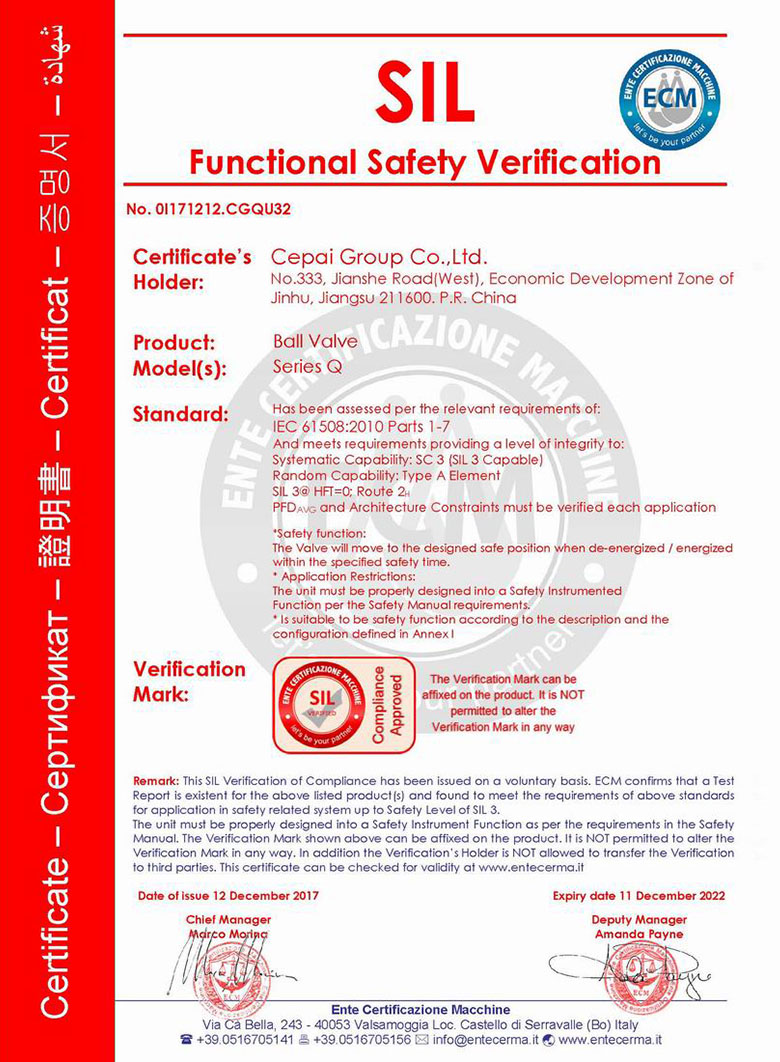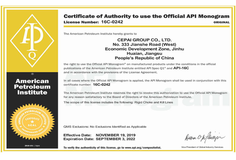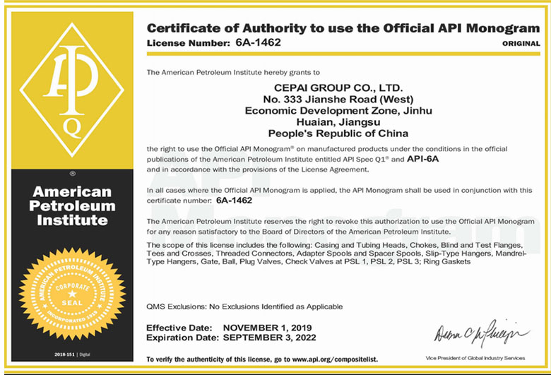 PetroChina innovative product experimental base CEPAI business license AAA credit rating certificate API-6A certificate API-6C certificate API-6D certificate CEPAI certificate for ball valve CEPAI certificate for ball valve Jiangsu famous brand products AAA certificate of measurement management system Safety standardization certificate 20211216CE certificate SIL certification of actuator SIL certification of actuator API-Q1 certificate